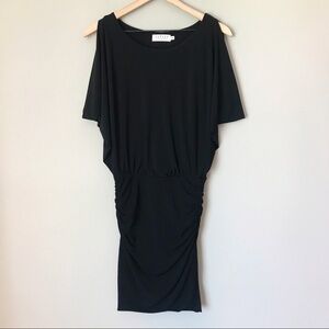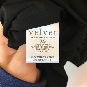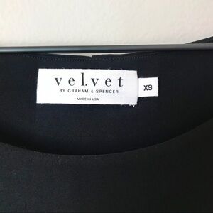 Velvet by Graham and Spencer dress in black. Size XS. Blouson style top. Sleeveless with dropped armholes (see measurements below). Cinching at sides below the hips. Has some stretch. Pre-owned, very good used condition- flawless except for some wear to fabric on sides of thighs/hips (see last photo). The perfect little black dress!