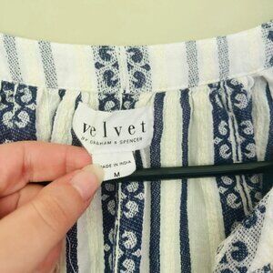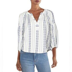 Velvet by Graham & Spencer Brandi Printed Peasant Blouse in Ocean Blue SZ M