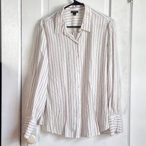 Super soft, 100% cotton blouse with slight peplum waist and adorable button detailing on sleeves and back of neck. This shirt is classically beautiful and simple; only worn twice!