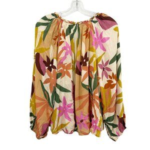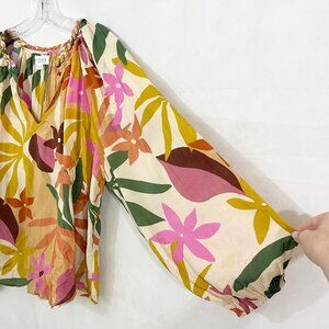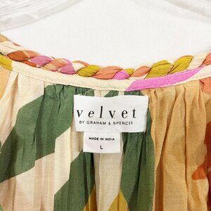 Velvet by Graham & Spencer Dion Printed Boho Top Balloon Sleeve V-Neck Size Larg