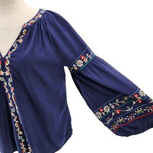 Velvet by Graham & Spencer Embroidered Floral Navy Blue Peasant Top Women's Size XS - X-Small