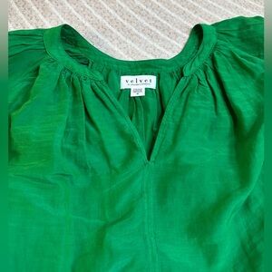 Velvet by Graham & Spencer Green Ruffled 3/4 Sleeve Blouse Top M Bohemian Boho