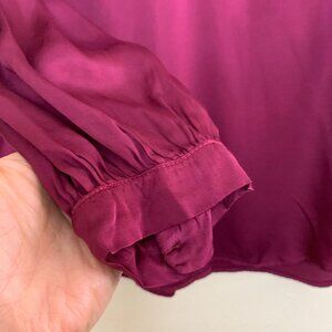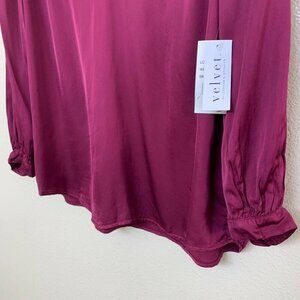 Velvet by Graham & Spencer LORI Shirred V-Neck Satin Blouse SMALL Winestone Red