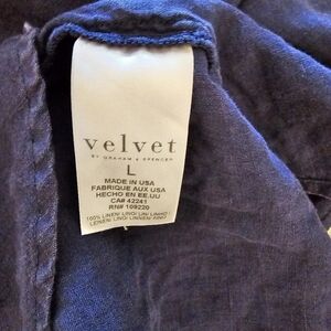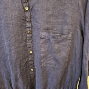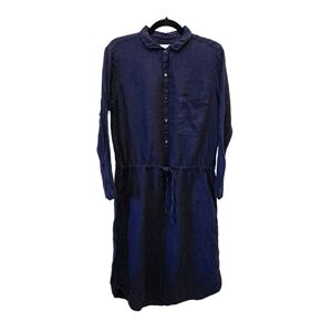 Velvet by Graham & Spencer Large 100% Linen Blue Dress Pocket Front Tie