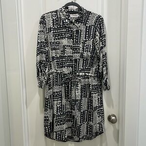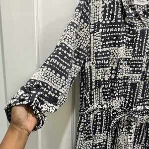 Velvet by Graham & Spencer Patterned Button Down Shirt Dress Grey & Cream Sz S