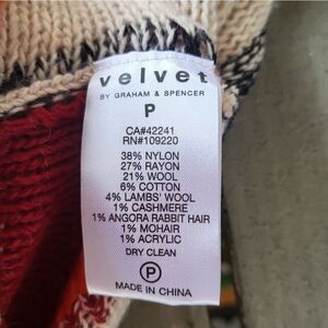 Velvet by Graham & Spencer Pullover Sweater Ribbed Knit V-Neck Multicolor Petite