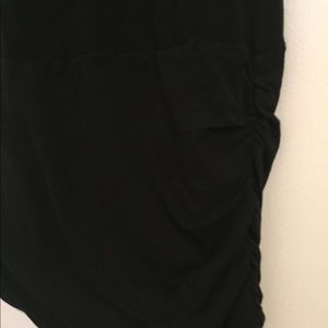 Velvet by Graham & Spencer black tunic or short dress with ruched scoop neckline and bottom hem. I am medium height and mostly wore it with tights or leggings, but it's long enough to be worn as a dress as well.