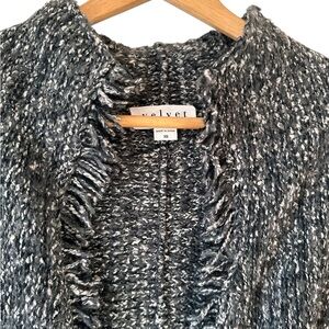 Velvet by Graham & Spencer Tweed Chunky Knit Fringe Open Front Cardigan