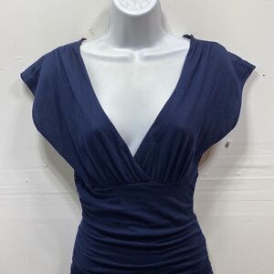 Dark blue midi length dress with banded waist from Velvet by Graham & Spencer. V neck. Size small.