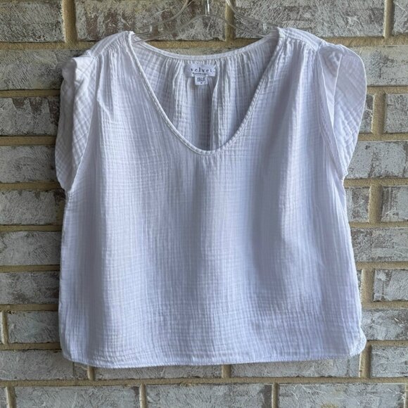 Velvet by Graham & Spencer V-Neck Short Sleeve White Gauze T-Shirt Size M