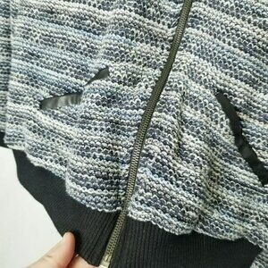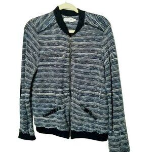 Velvet by Graham & Spencer White and Blue Knit Striped Full Zip Moto Jacket L