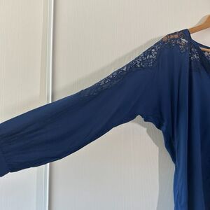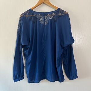 Velvet by Graham & Spencer Womens Blue Lace Long Sleeves Blouse Size Small NWT