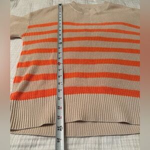 Coral and ecru stripes. Very cute. I love the colors.