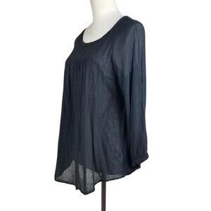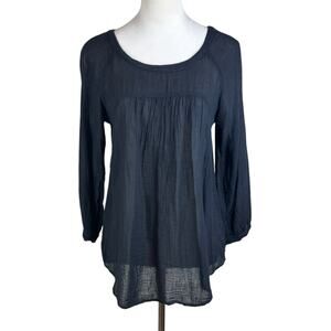 Velvet by Graham & Spencer XS Black Sheer Gauze Thin Long Sleeve Round Neck Top