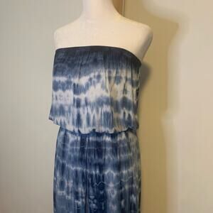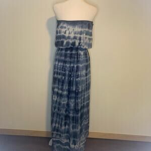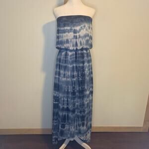 Velvet by Graham & Spencer blue & white tie-dye strapless maxi dress size M