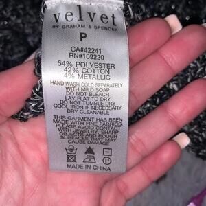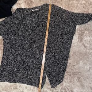 Velvet by Graham & Spencer open front sweater. Silver and black sweater. So soft! Loose knit sweater. Easy to throw on and complete any outfit. No buttons or clasp waterfall style. Open front knit cardigan SZ M. No flaws. Open front knit cardigan sweater in gray and black will silver hints woven in. Could be worn as Business casual, dress up, casual wear. Everyday wear. Vacation, Fireplace, Holiday, Hugs me, winter, warmth, soothing, cuddle.