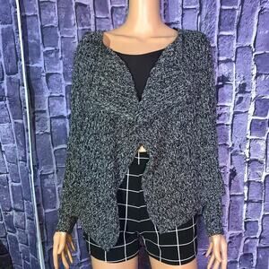 Velvet by Graham & Spencer cardigan sweater black silver cardigan loose SZ MD