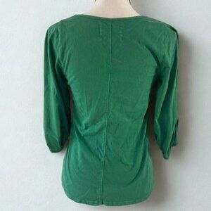 Soft and comfortable Velvet by Graham & Spencer for Anthropologie top in a rich green shade. Flattering V-neckline and relaxed 3/4 balloon-style sleeves. A great everyday basic with a slightly elevated silhouette.