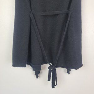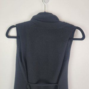 Velvet by Graham & Spencer 100% cashmere sleeveless cardigan vest in black. Attached belt, waterfall style draping in front. Some light pilling, otherwise great condition.