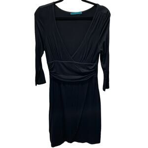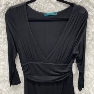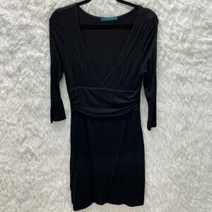 Velvet by Graham and Spencer Drape Waist V Neck Wrap Skirt Black Dress L NEW