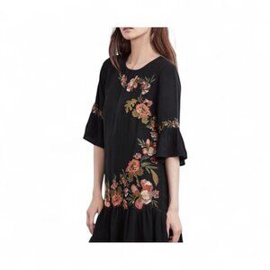Velvet by Graham and Spencer Floral Embroidered Bell Sleeve Dress Black