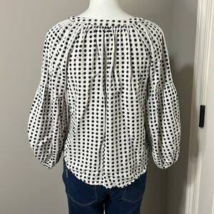 Velvet by Graham and Spencer White Black Embroidered Polka Dot Blouse XS