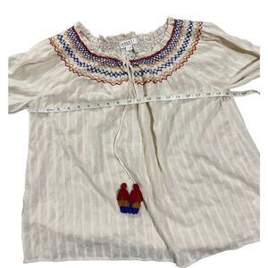 Velvet by Graham & Spencer Trudie Embroidered Smocked Long Sleeve Blouse sz M
