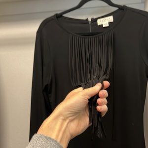 Velvet dress with front fringe.