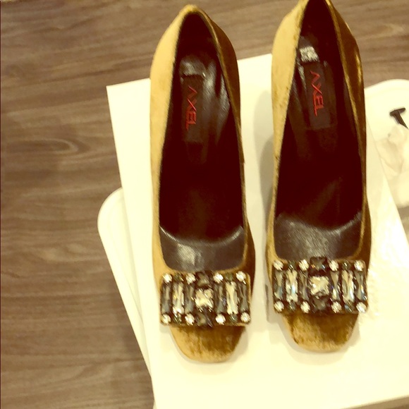 These elegant velvet cognac high heels are so comfortable and also could be worn in the office with gem accents