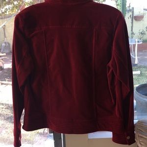 Red velvet Jacket. New. Nicely fitted. True to size. Gold buttons and zipper.