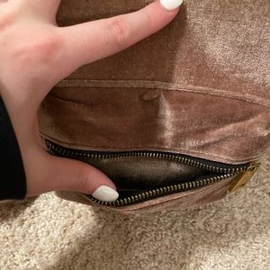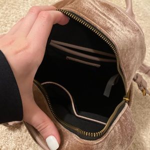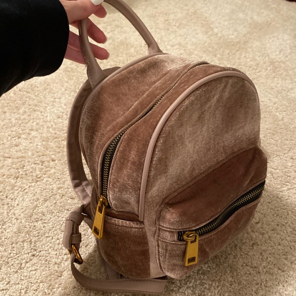 So cute and functional, velvet light pink mini backpack. BASICALLY BRAND NEW. Worn a handful of times