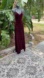 This is a maroon burgundy or Berry velvet with plenty of stretch. Slip dress styling. Double straps, adding up to a strappy back . Very high front slit in a wrap styling in excellent condition.