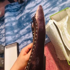 Velvet studded pointy flats