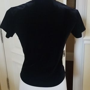 Black velvet, v neck top with cap sleeves. 15" chest 19"length Very stretchy material. Like new condition