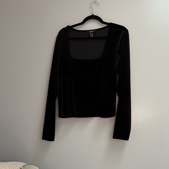 Cropped velvet black top, square neck line