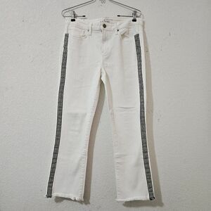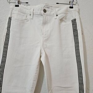 Design: White (often described as "Salt" wash) denim with black/gray stripes running down the sides.