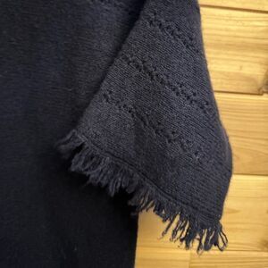 Navy Blue Cashmere Raw Edge Short Sleeve Sweater With Eyelet Style Holes By Design