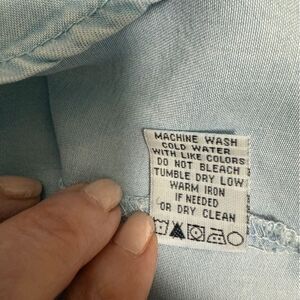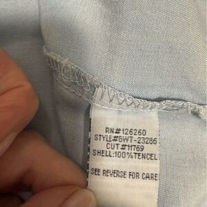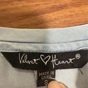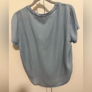 Velvet Heart Blue Chambray V Neck Short Sleeve Top with High Low Hem. Size Small