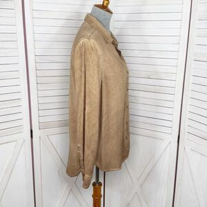 Velvet Heart Oil Rubbed Look Button Up Shirt Tan Small Western Grunge Rayon