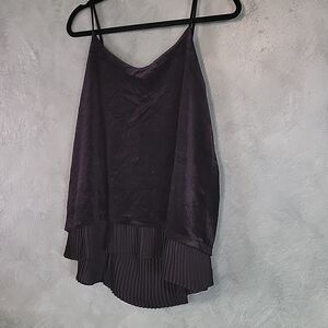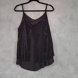 Beautiful velvet tank with pleated detail inside. Size large but flexible fit. I wore as an XL no problem. Adjustable straps