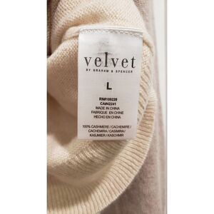 MSRP $268!! This is a designer women's sweater made by Velvet by Graham & Spencer. It is a color block pullover sweater made of 100% cashmere with a tight-knit fabric type. The sweater has a crew neck, long sleeves, and a standard sleeve type. It is available in size L and is suitable for party/cocktail, casual, and business occasions. The sweater is lightweight and is suitable for winter, fall, and spring seasons. It is new with tags.