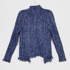 Velvet by Graham & Spencer Blue & Black Fringe Cardigan Sweater