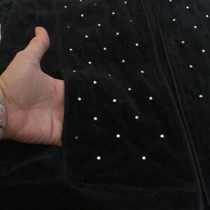 Very nice condition but some of the sparkly stones are missing, they give the illusion of dull stones where they are missing. Very nice light weight jacket