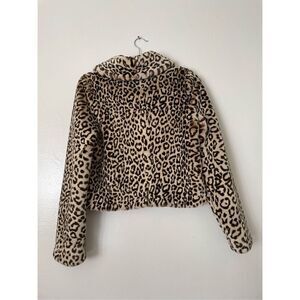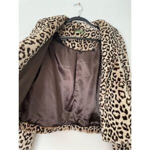 Super plush yet slim fitted faux fur leopard print chubby coat with rolled shawl collar, extra long sleeves and hidden hook closures. A perfect topper for really any look this winter season! No labels, great quality, circa 1980s/90s.