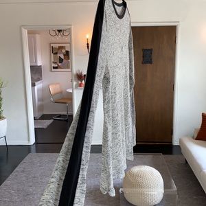 Long sleeve tee in the softest comfiest grey fabric with a black velvety stripe down the sleeve. Great basic layering piece.