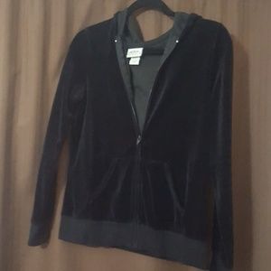 Zip up hoodie. Awesome detail on back not missing any bling. Rarely worn. This is deep black however in pic it doesn't look it due to lighting.