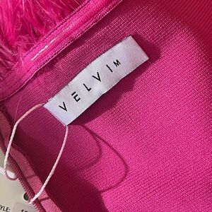 Velvi Sochi Mini Hot Pink Feather Trim Strapless Bodycon Dress Size M