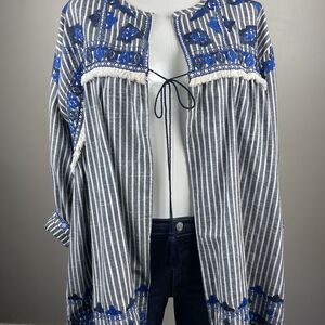 Velzera Boho Floral Embroidery Striped Open Jacket Top Oversized Bohemian. Condition is Pre-owned. Shipped with USPS Ground Advantage.