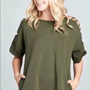 🆕Velzera Olive Pocket Cutout Tunic Dress M🆕