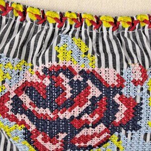 Velzera Size Small Blue White Striped Sleeveless Top Floral Embroidered Ruffle